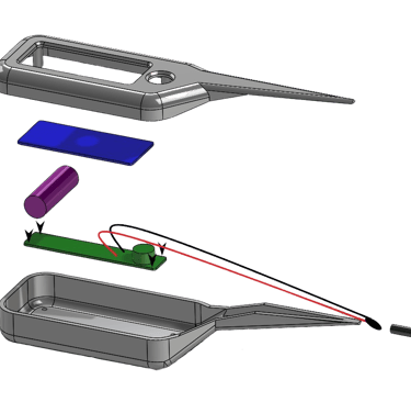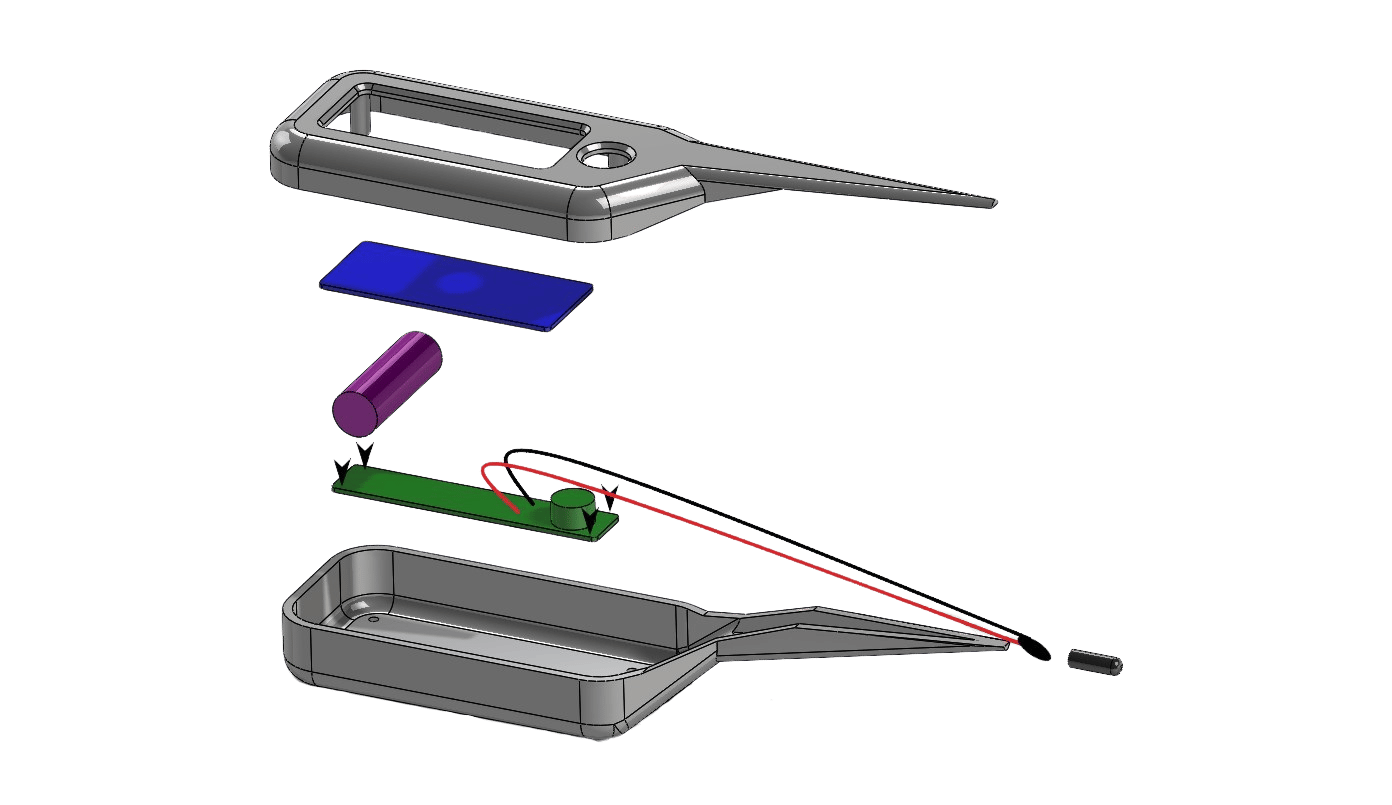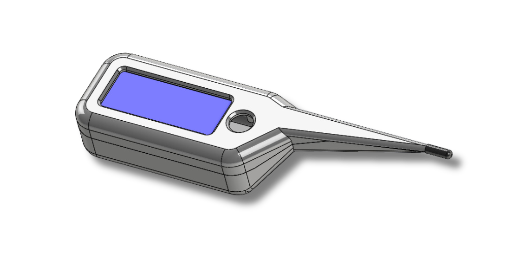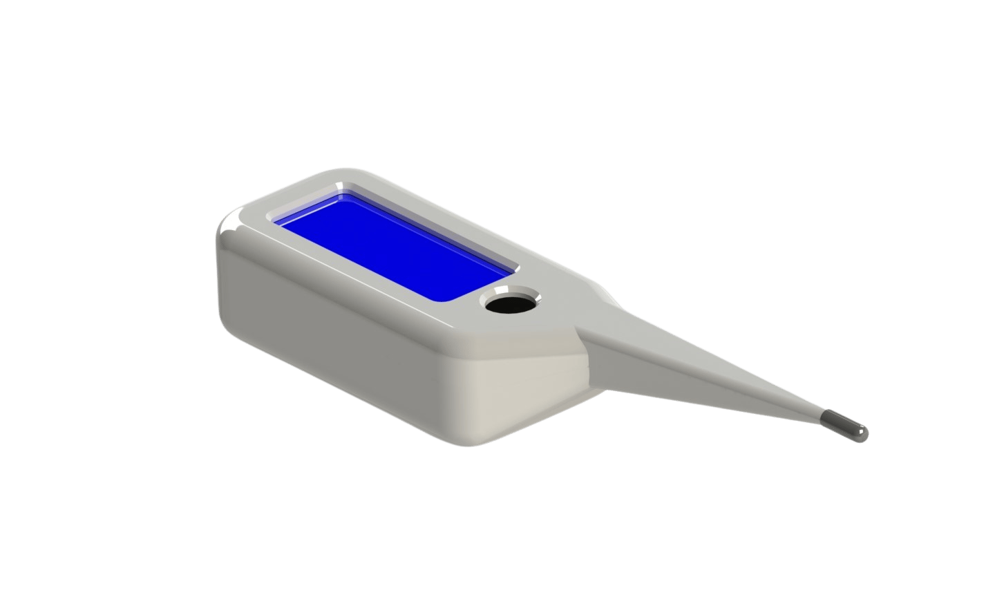 The focus of this project were the internal electronic components, cost and assembly. The external case of the thermometer would be injection moulded using raw polypropylene. Some internal components would be components like: a lithium battery, sensor cap, PCB, LCD display, micro-usb port, and (pcb) screws.