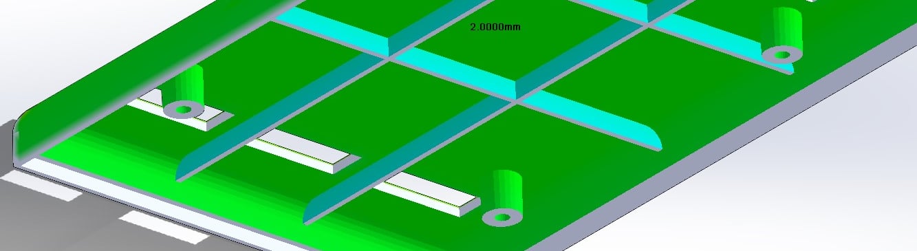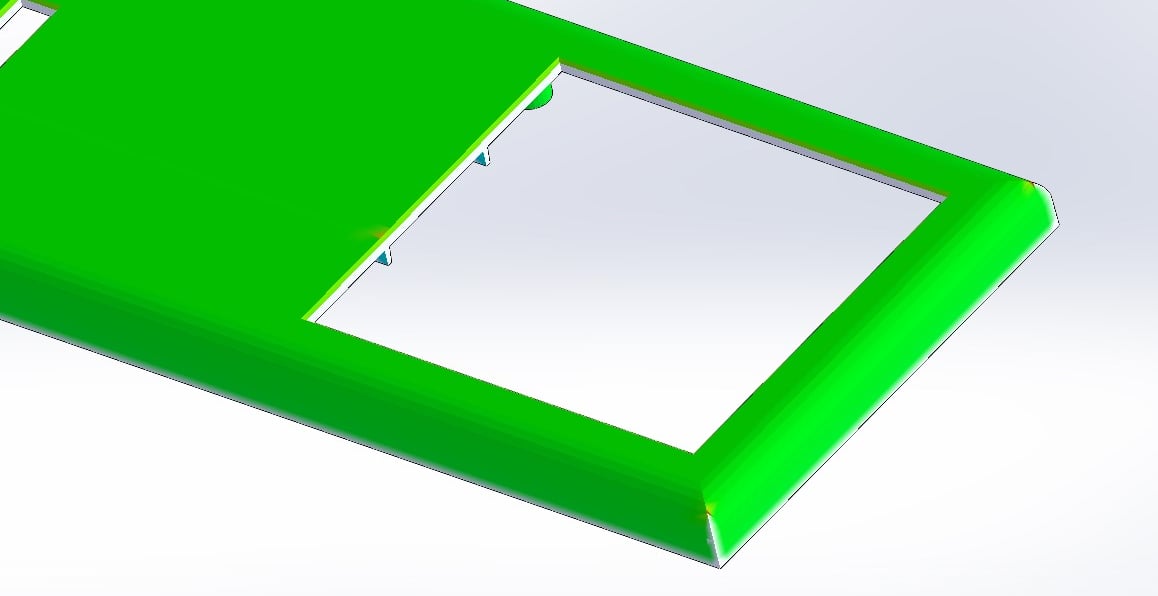 Thickness, a uniform thickness is important for certain physical restistance properties of the product itself but is also extremely important for injection moulding. A non-uniform thickness can lead to bad flow of the thermoplastic polymer throughout the mould, it could also lead to sinkholes, warping and tearing after the thermoplastic cooled off making the product less physically resistant and possibly harder to eject from the mould itself. After the analysis, also shown below I had to make minor adjustments to optimise the thickness, mainly around edges where fillets were applied.