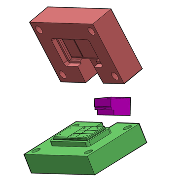 The final mould design exists of 3 parts, the cavity, the core and a third sideways moving part, which sole purpose is for the usb-c port.