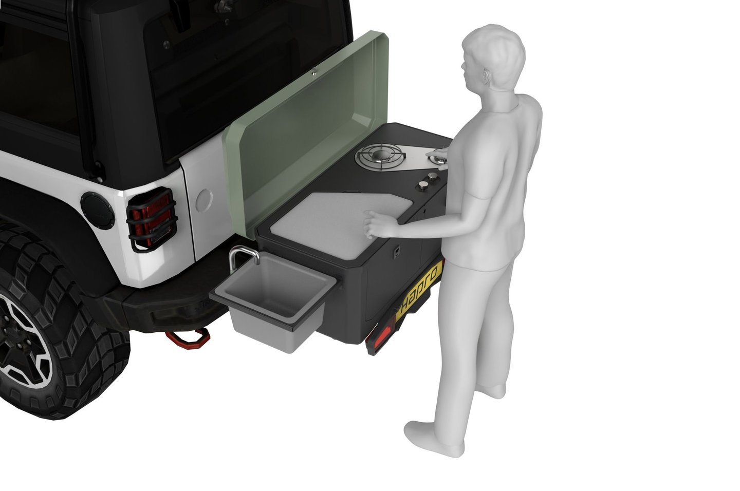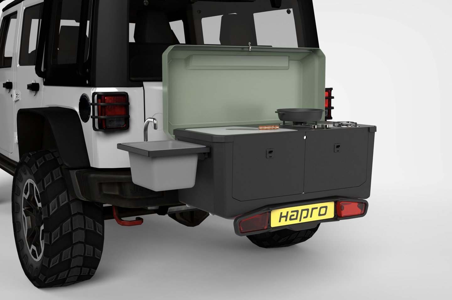 From early sketch exploration to concept development and technical optimisation, the final design balances functionality, manufacturability and brand alignment. Special attention was given to weight reduction, structural integrity, and production feasibility within Hapro’s in-house capabilities. The result is a realistic, production-oriented concept that translates outdoor cooking into a compact, organised and premium tow-bar solution.