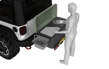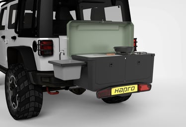 This university project was developed in collaboration with VDL Hapro, a manufacturer known for mobility and transport solutions. The assignment was to design a hitch-mounted outdoor kitchen that integrates with their existing tow-bar carrier platform, expanding their product portfolio into the growing outdoor and overlanding market.